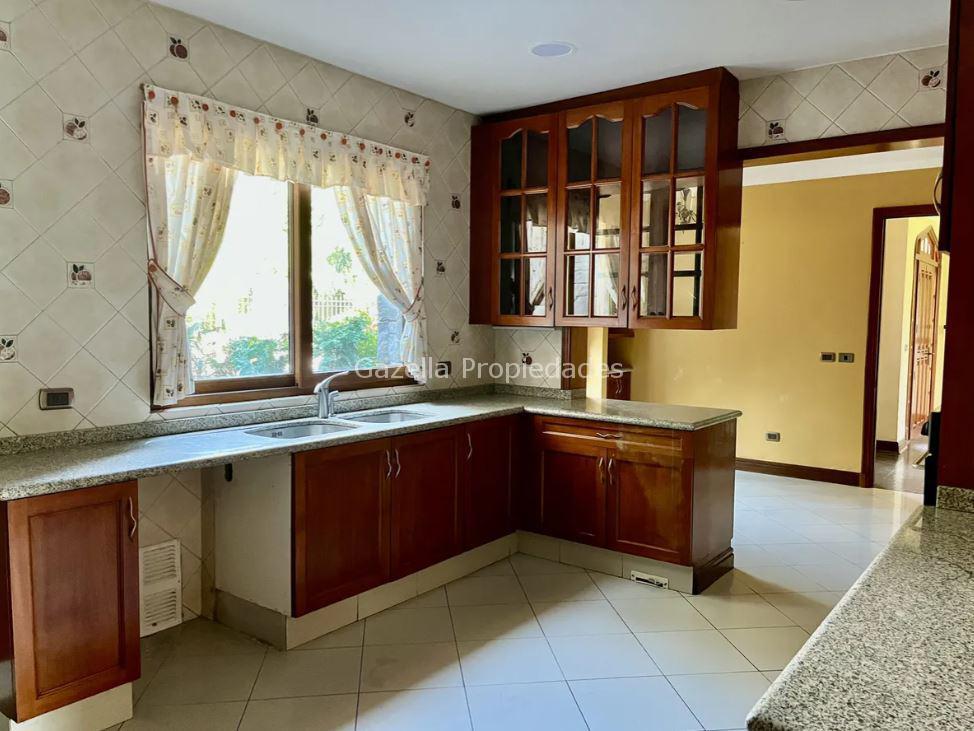 Amplia cocina equipada, despensa y gran comedor de diario separado, muebles con cubierta de granito, logia con zona de planchado, patio de servicio techado con muebles y salida directa hacia los estacionamientos.