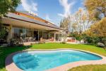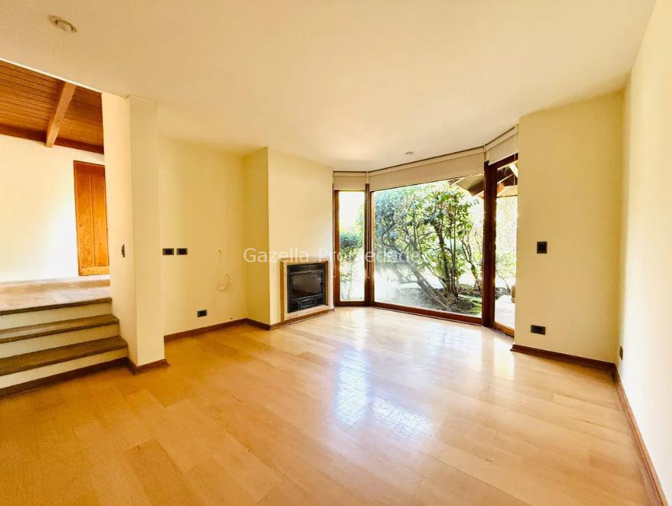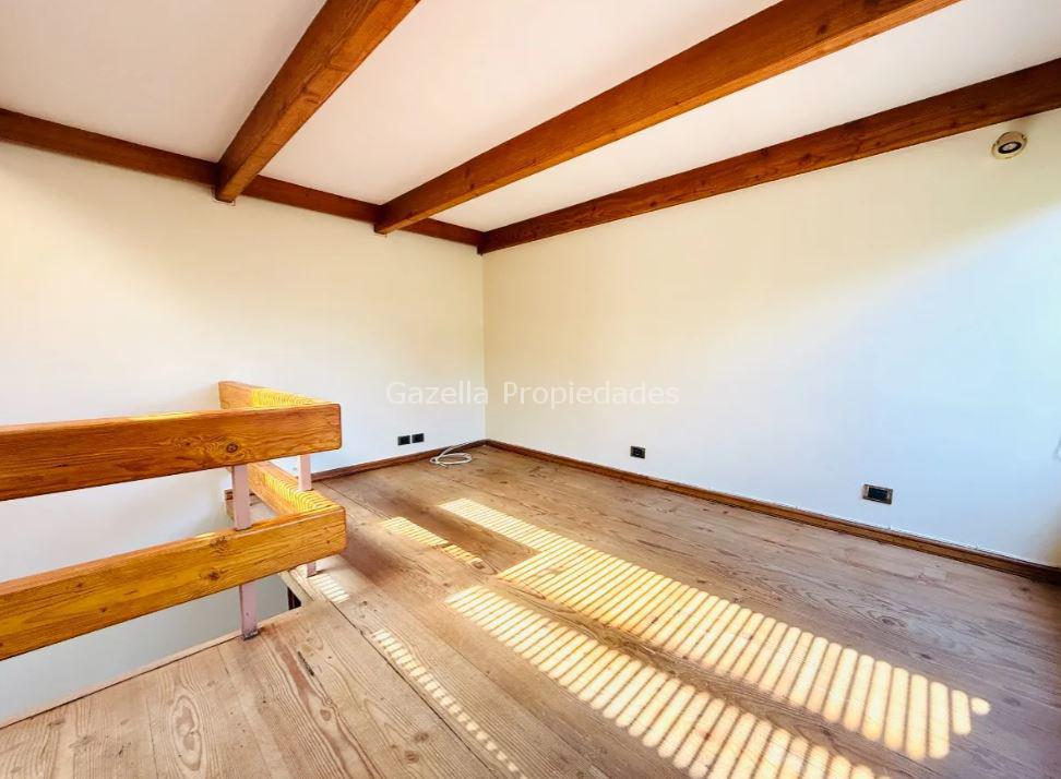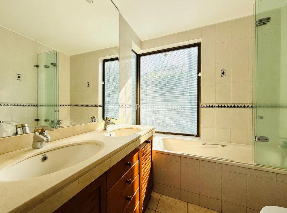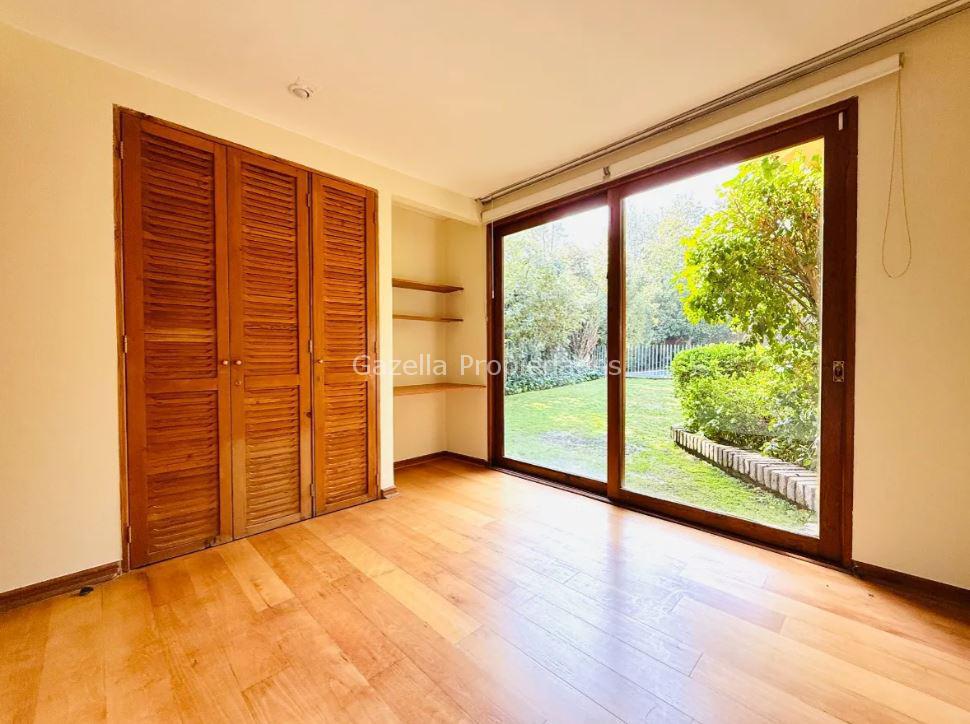 El exterior incluye estacionamiento techado para dos autos, jardín y piscina. Entre los detalles constructivos destacan el piso de parquet en living y comedor, calefacción por losa radiante con caldera a petróleo, alarma, cerco eléctrico y paneles solares para la piscina.- Número de dormitorios: