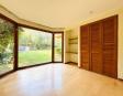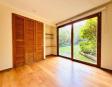 En el primer piso se encuentra el hall de acceso, baño de visitas y un living y comedor separados, ambos con salida directa a la terraza y al jardín. La cocina cuenta con comedor de diario, despensa, logia, patio de servicio y dormitorio y baño de servicio. En esta planta hay una sala de estar, dos dormitorios secundarios con acceso al jardín que comparten un baño, y un tercer dormitorio con baño en suite.