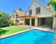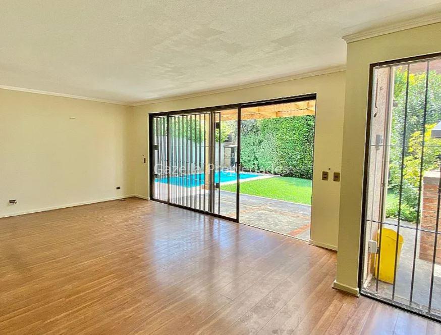 Estacionamiento para dos autos, piscina, quincho, jardín y terraza.