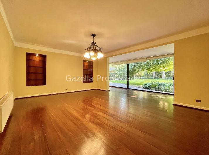 Su distribución se desarrolla en un solo piso; al ingresar nos encontramos con un amplio hall de distribución; a mano derecha; living y comedor separados, ambos con salida a la terraza, precioso parque con jardín formado, área de quincho techado y piscina. El living tiene acceso a un segundo sector de sala de juego. cocina remodelada; ante cocina con espacio para comedor de diario; dos amplias despensas. Dos dormitorios de servicio que comparten un baño. Sector de lavandería y patio de servicio. Tiene además, dos amplias salas de estar; baño de visita. En el sector de los dormitorios hay tres suites secundarias y dormitorio principal con salida al jardín, gran walk in closet; baño en suite y área de gimnasio equipado.