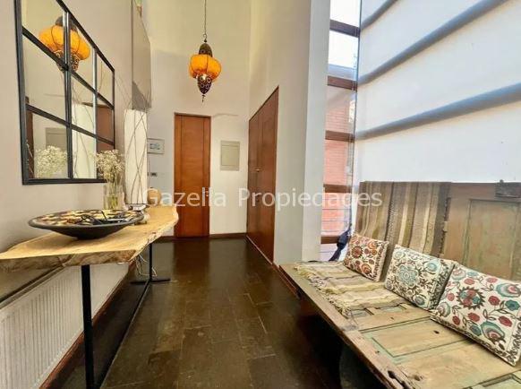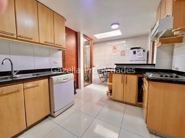 El exterior destaca por un jardín privado, piscina y quincho. La calefacción es por loza radiante y radiadores. El inmueble incluye dos estacionamientos y espacio para visitas. El valor del arriendo es UF 105 y el arriendo amoblado es UF 120. Los gastos comunes son de $180.000.- Número de dormitorios: