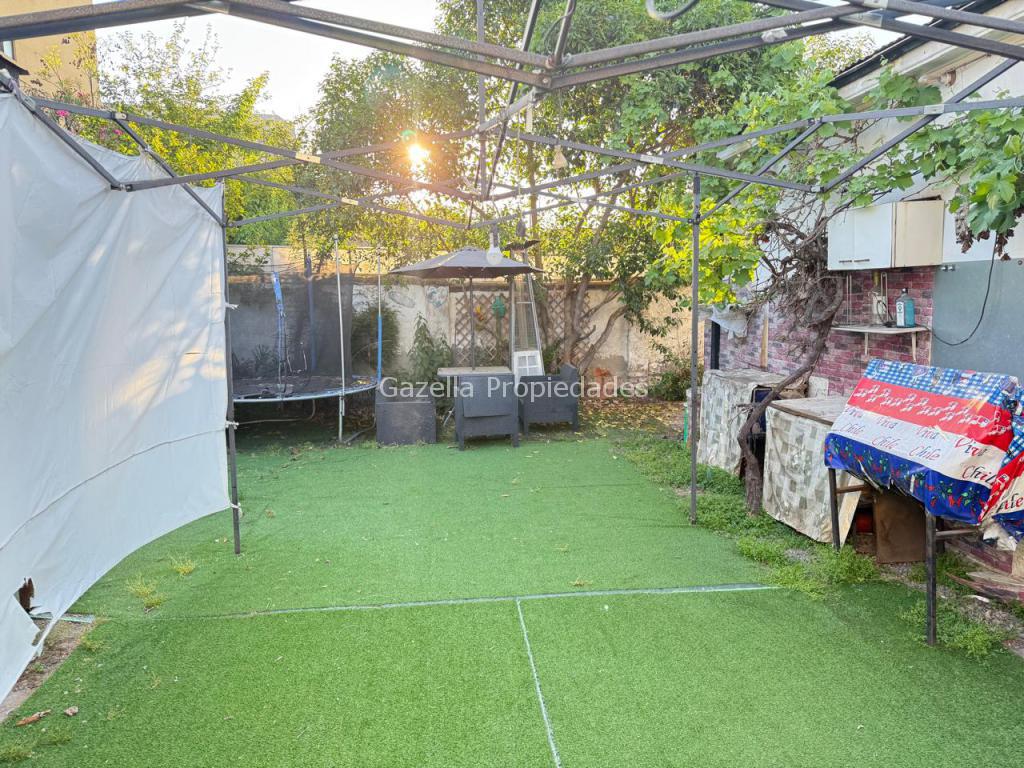 Amplio antejardín con estacionamiento interior para cuatro vehículos, gran patio