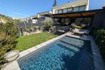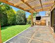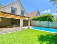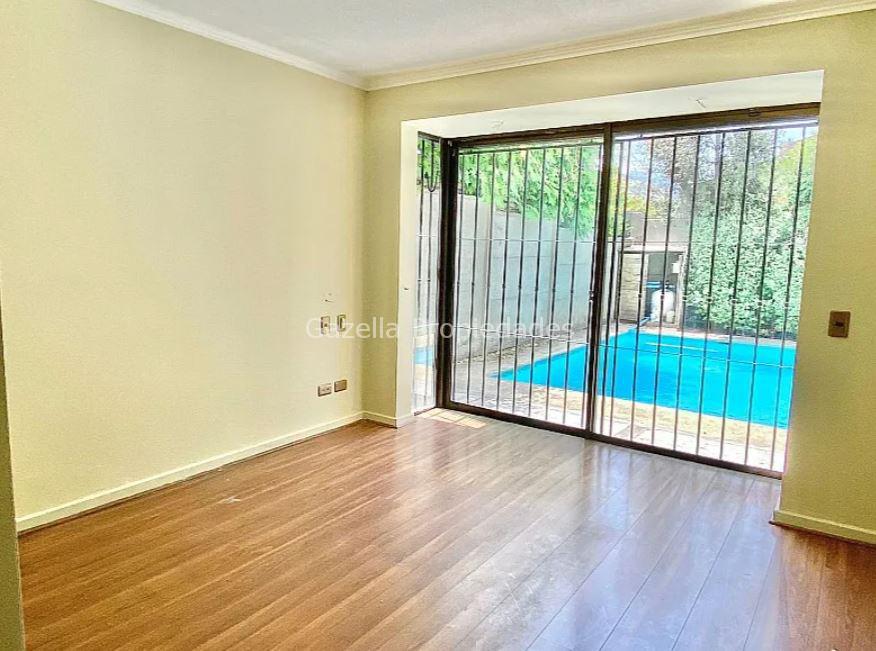 Estacionamiento para dos autos, piscina, quincho, jardín y terraza.