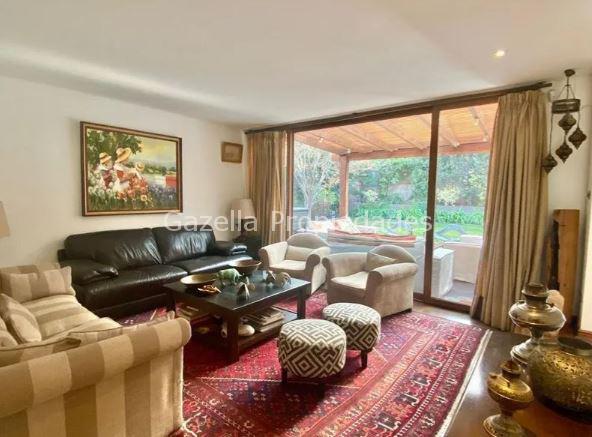 Ubicada en condominio en San Carlos de Apoquindo, esta casa ofrece orientación norte y seguridad. Cuenta con recibos amplios, living y comedor separados, ambos conectados a una terraza techada. El dormitorio principal es en suite y dispone de walk in closet, además de baño de visita.